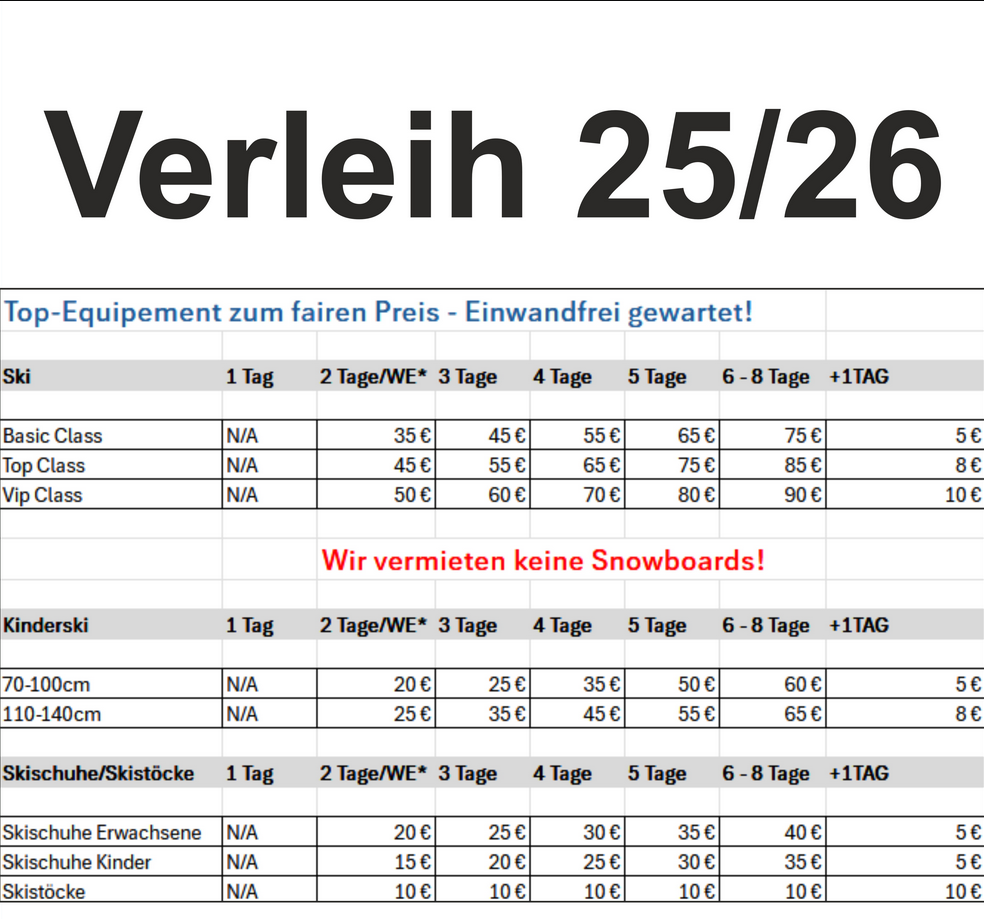 wir verleihen Skier, Skischuhe & Stöcke